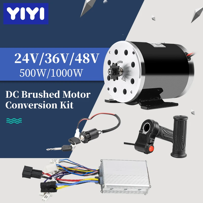 - Kit de conversão de motor elétrico escovado, 24v-48v 500w 1000w dc, controlador de acelerador para scooter elétrica diy, e bike, kart