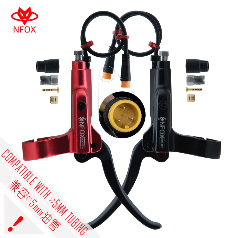 - Nfox bicicleta elétrica disco de óleo 160mm e-bike corte hidráulico freio esquerdo preto vermelho gt267 mountain bike hb875 peças acessórios